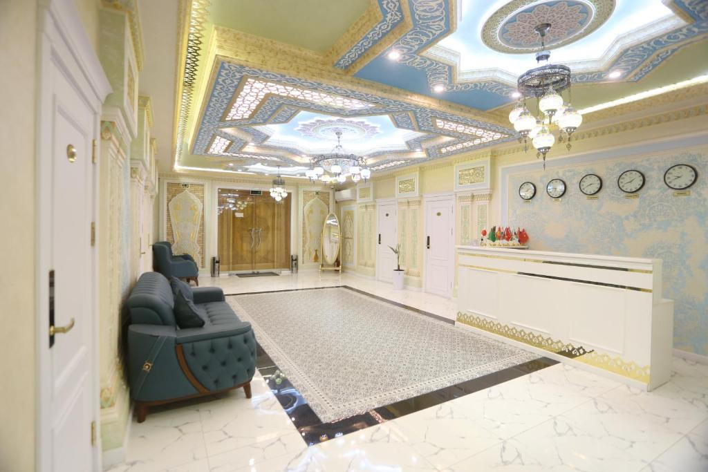 BIBIHOJAR Hotel is a hotel located in the city of Khiva. It offers a garden, a shared lounge, a terrace and a restaurant. Other facilities include concierge services and a tour desk, as well as free Wi—Fi throughout. Food and drink delivery, a 24-hour front desk and a currency exchange service are available.