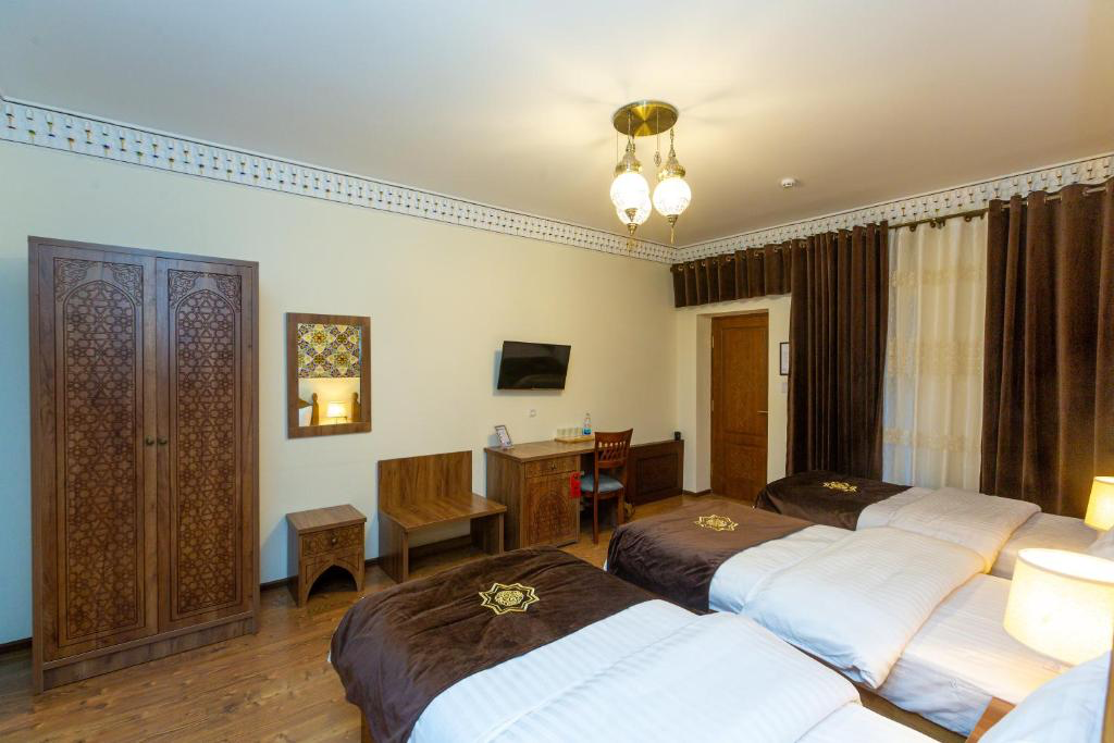 Iman Hotel is a unique place for comfortable rest and accommodation in the heart of historical Bukhara. We offer our guests cosy rooms with modern amenities, first-class service and the atmosphere of hospitality characteristic of this ancient city. Every corner of Iman Hotel reflects the rich culture and traditions of Uzbekistan, combining them with modern amenities for the comfort of our guests. Our team of professionals is always ready to make your stay as pleasant and unforgettable as possible. The hotel is conveniently located in the city centre, close to the main attractions of Bukhara, making it easy to explore this historic city with its famous mosques, madrasas and markets.