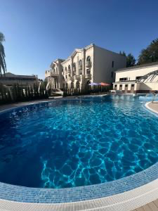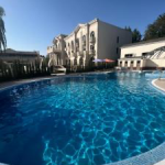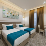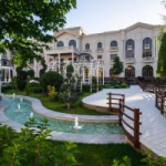 Zarafshon Parkside Hotel Le Zarafshon Parkside Hotel est un hôtel historique situé dans un complexe partiellement classé au patrimoine de l’UNESCO. Construit en 1959, il impressionne par sa façade néoclassique imposante ornée de hautes colonnes.